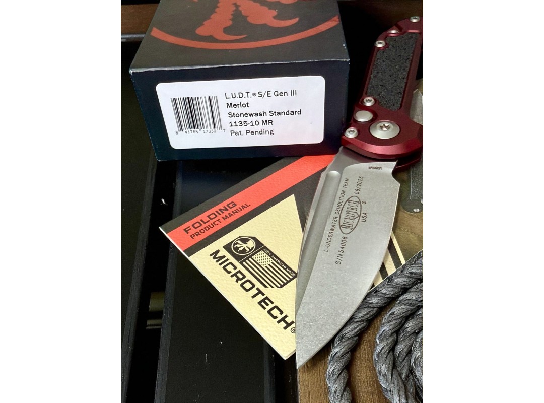 Вы всегда можете купить складной нож MicroTech LUDT GenIII, StoneWash Blade, Merlot Handle в нашем магазине по привлекательной цене и с гарантией производителя.