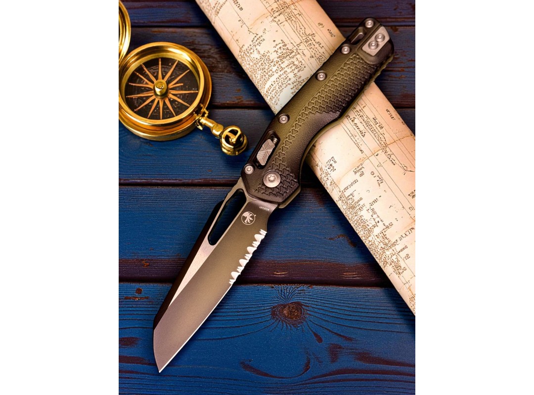 Нож складной MicroTech MCT210T2PMFBO MSI Ram-Lok, Part Serrated Blade, Bazooka Handle