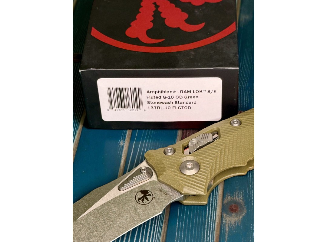 Нож складной MicroTech MCT137RL10FLGTOD Amphibian Ram-Lok, StoneWashed Blade, OD Green Handle