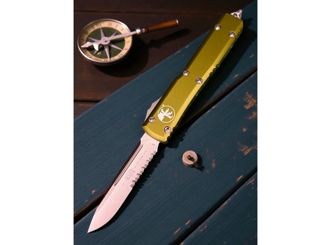 Нож складной MicroTech MCT12111OD Ultratech, Stonewash PartSerrated Blade, OD Green Handle