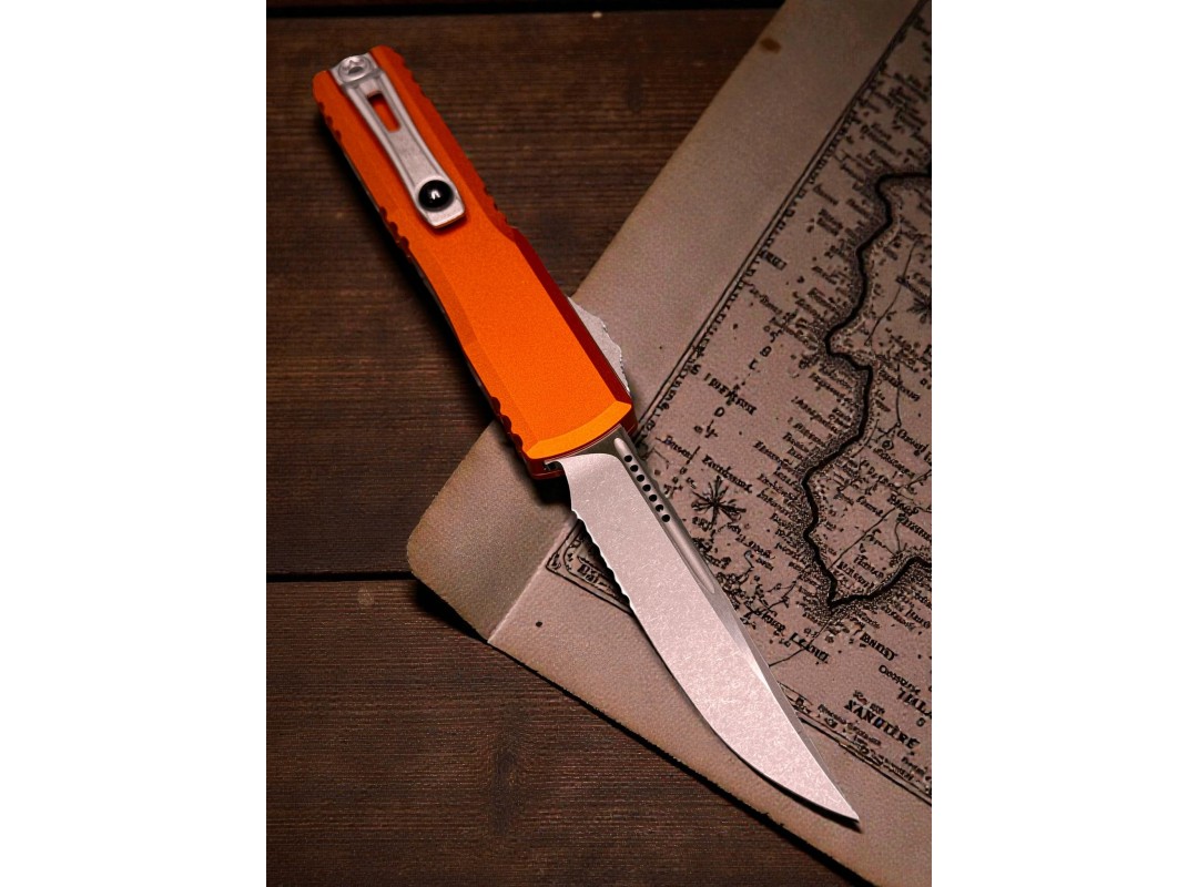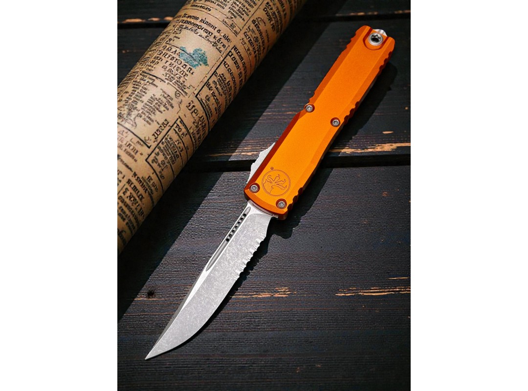 Нож складной MicroTech MCT1121411APOR Ultratech Gen IV, Apocalyptic PartSerrated Blade, Orange Handle