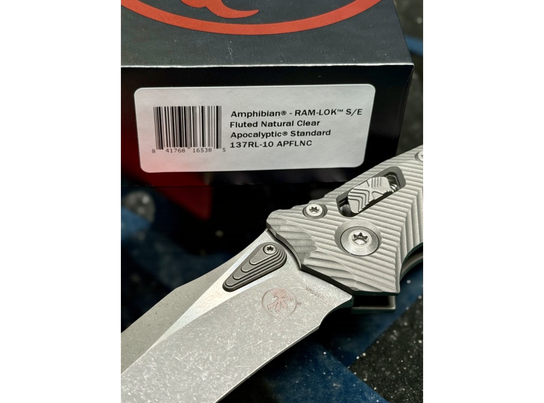 Вы всегда можете купить складной нож MicroTech Amphibian Ram-Lok, Apocalyptic Blade, Fluted Natural Clear в нашем магазине по привлекательной цене и с гарантией производителя.