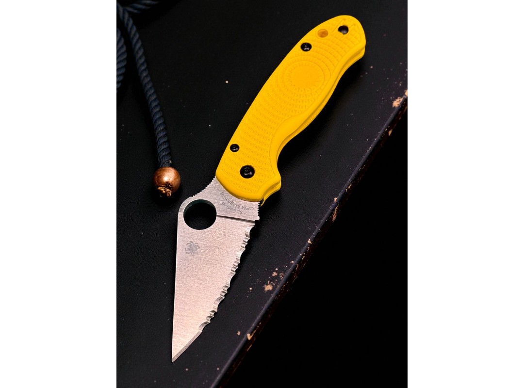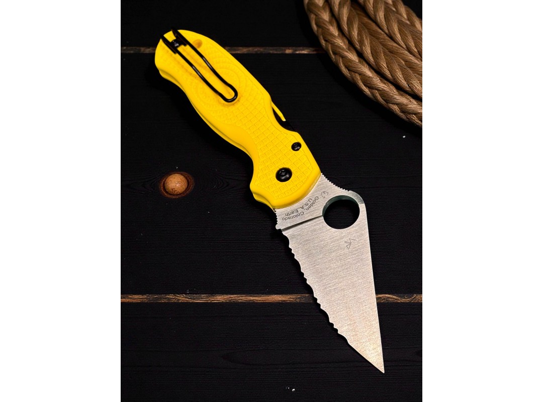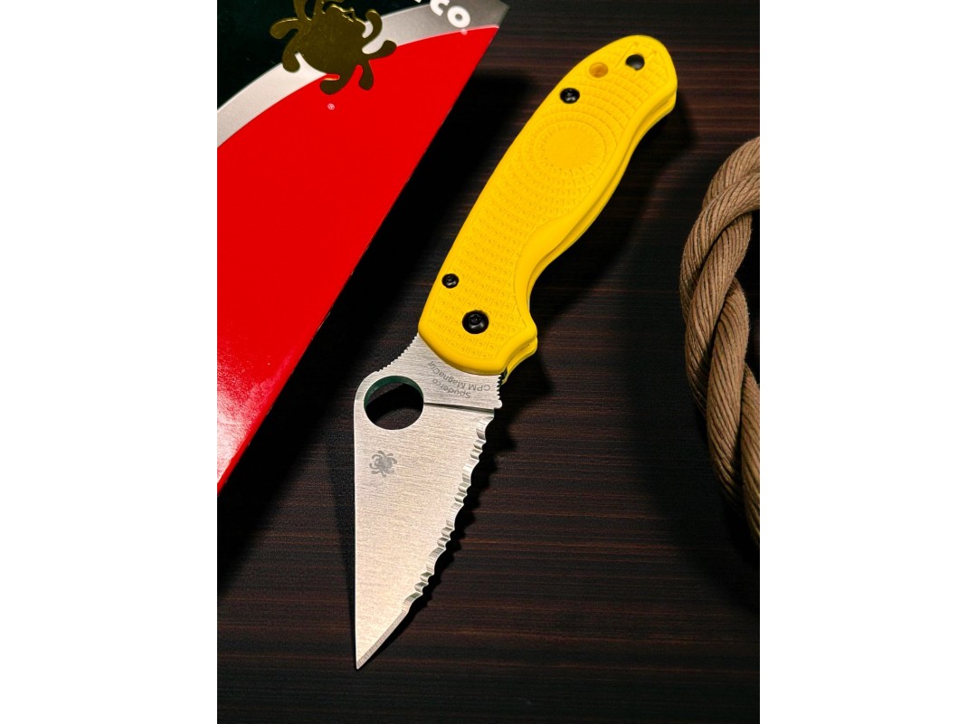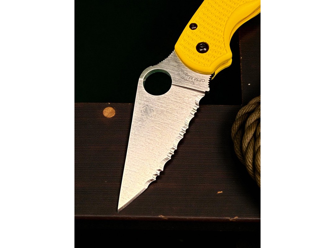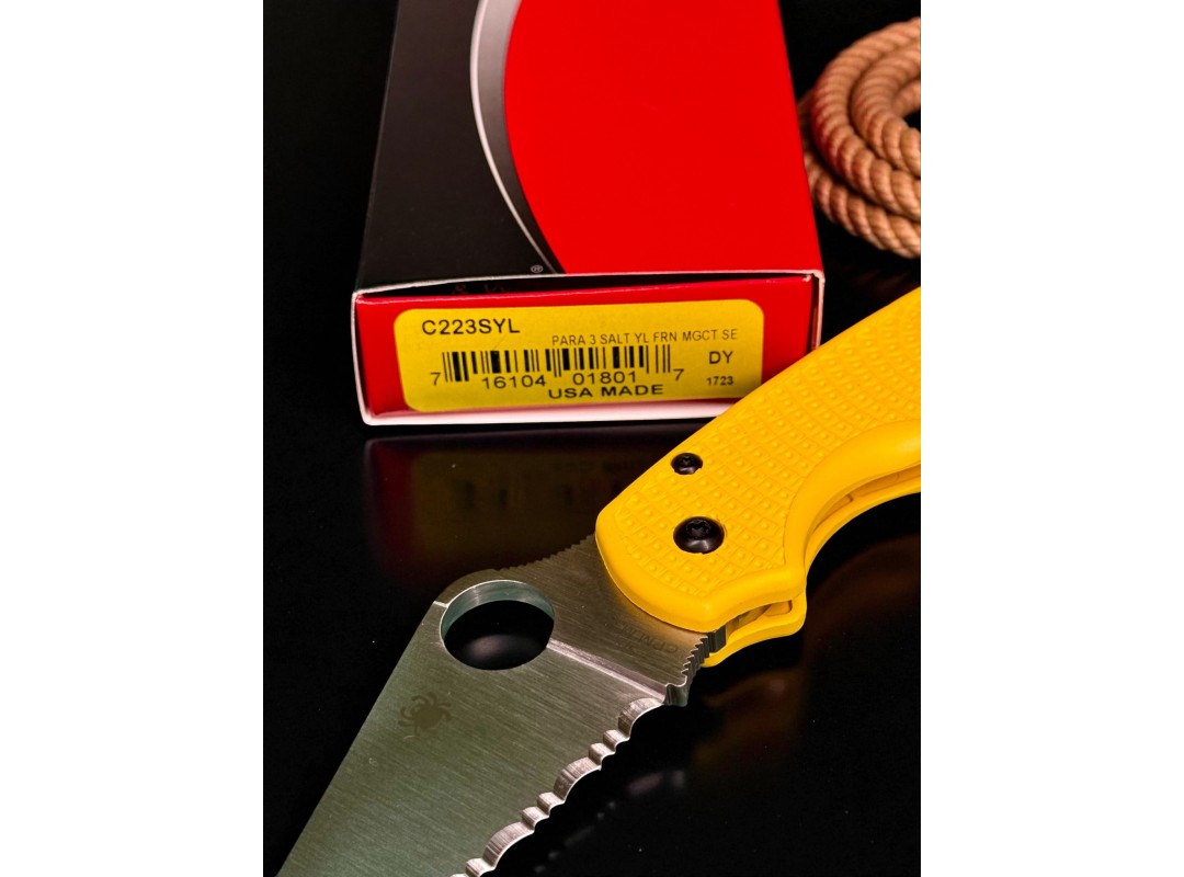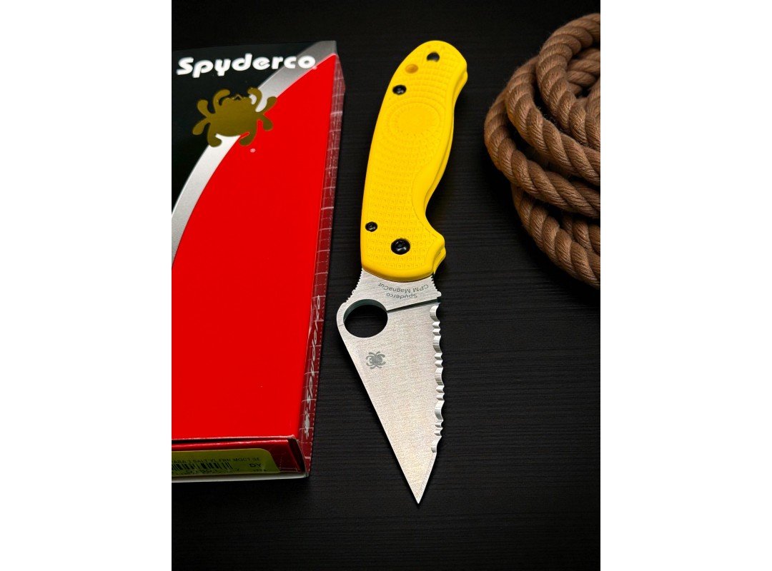 Нож складной Spyderco SC223SYL Para-Military 3 Salt, MagnaCut Serrated Blade, Yellow Handle