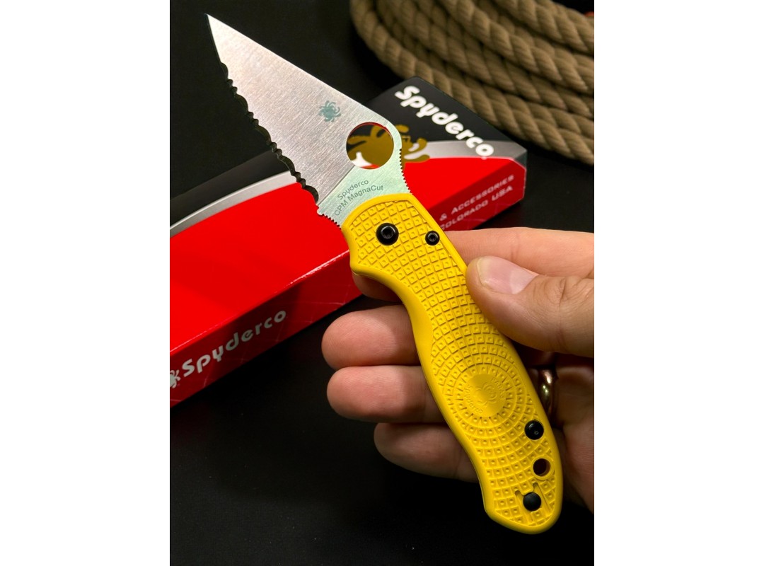 Приобретая складной нож Spyderco Para-Military 3 Salt, MagnaCut Serrated Blade, Yellow Handle в нашем магазине, Вы можете быть уверены в качестве и оригинальности товара.
